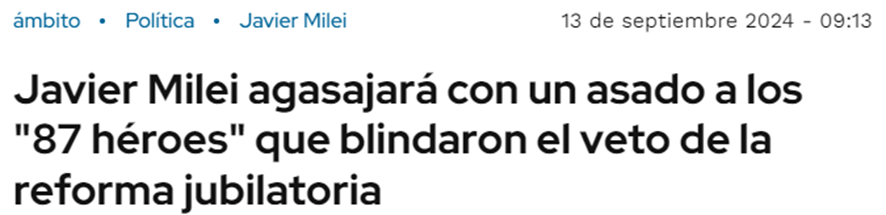 El asado se había organizado en una estancia a pocas horas de la Ciudad de Buenos Aires, y los ochenta y siete héroes que habían votado el veto al aumento jubilatorio estaban ahí.