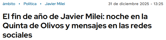 El presidente había decidido pasar la última noche del año para celebrar su éxito personal en la Quinta de Olivos con su familia: su hermana, sus padres y sus perros. También algunos empleados de la residencia presidencial estarían presentes, en una mesa separada, para asistir a la familia.